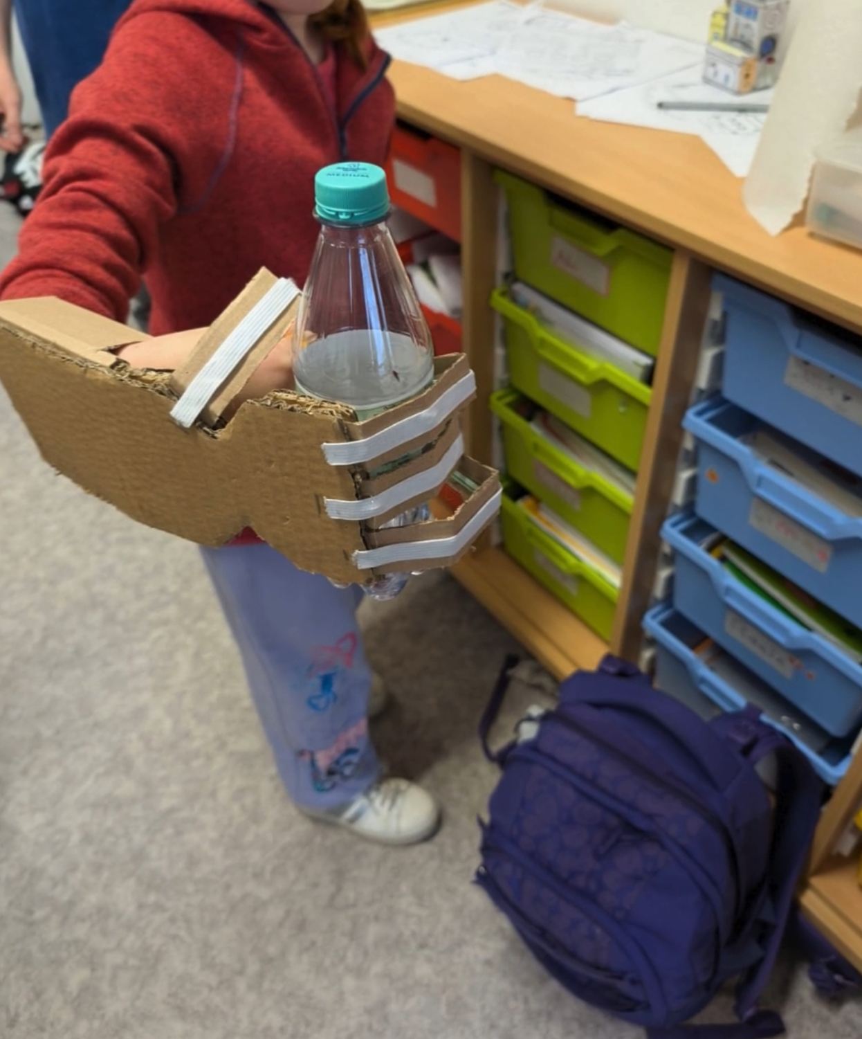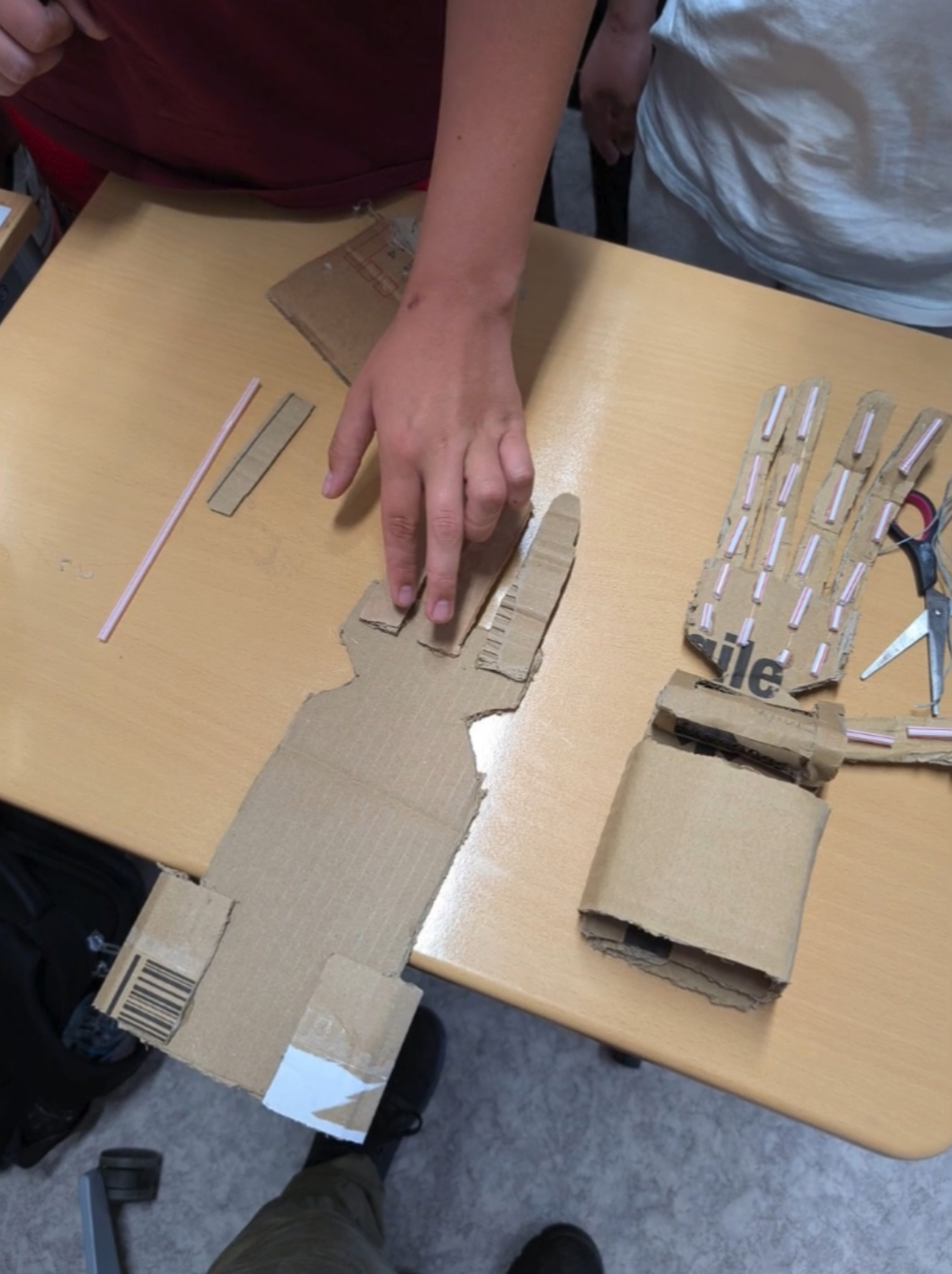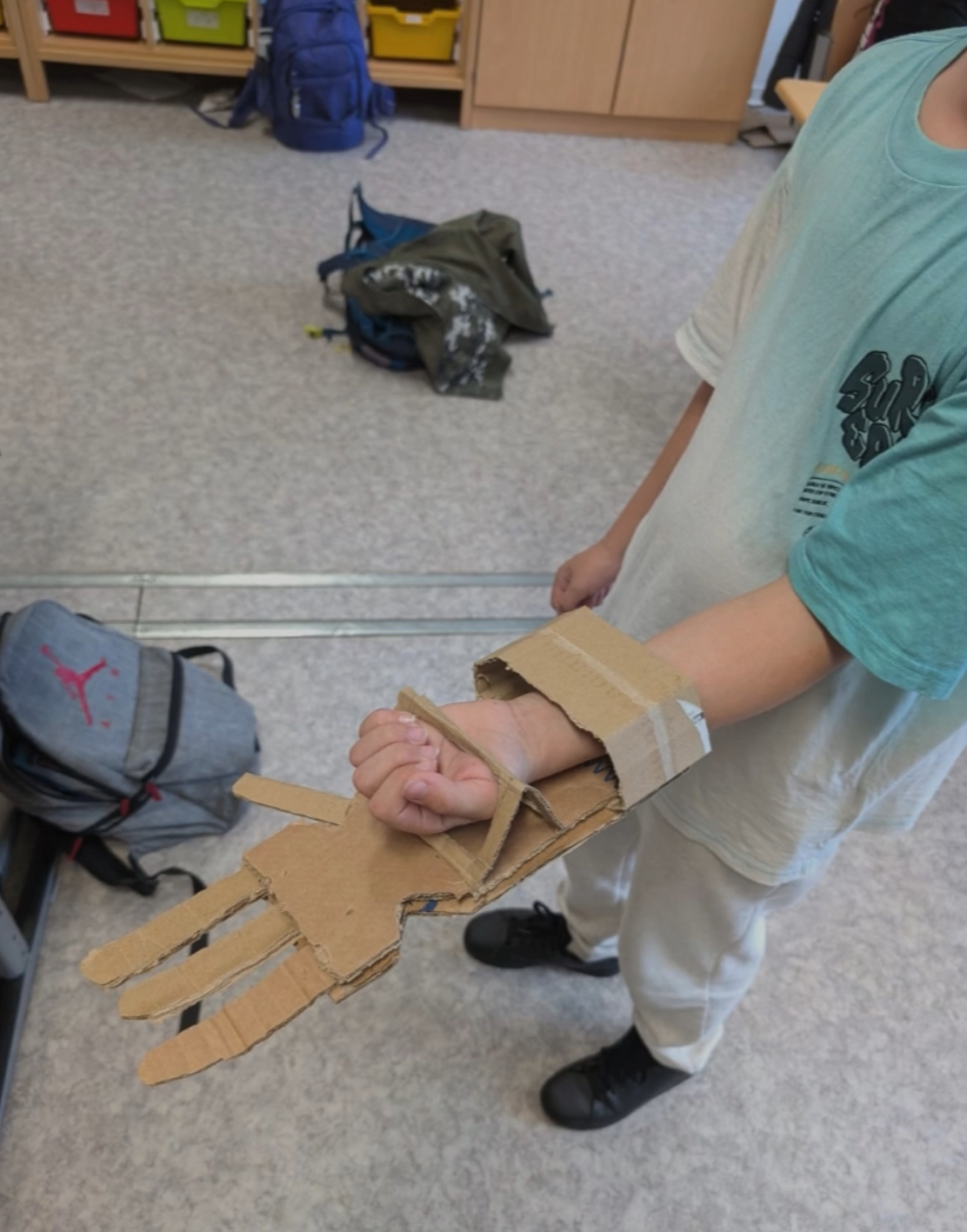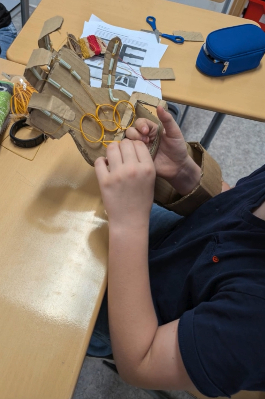 Im Rahmen der Forscherstunden baute die damalige Klasse 5D bionische Hände aus Pappe, Strohhalmen und Schnur. Ausgangspunkt war ihre eigene Einschulungsfeier, bei der das Thema „Hände“ im Mittelpunkt stand …